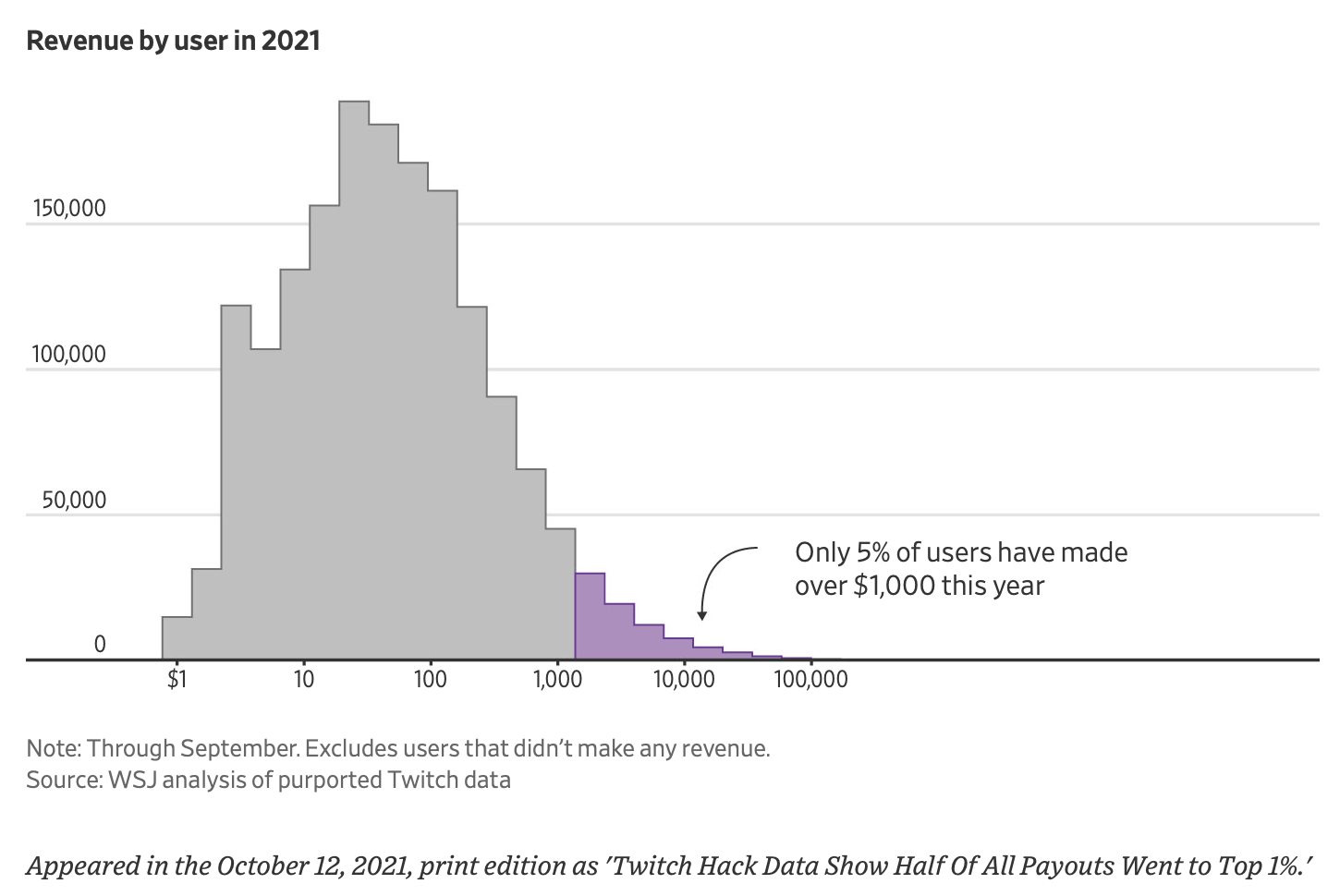 La desigualdad en los ingresos generados por los creadores en Twitch (a través de The Wall Street Journal).