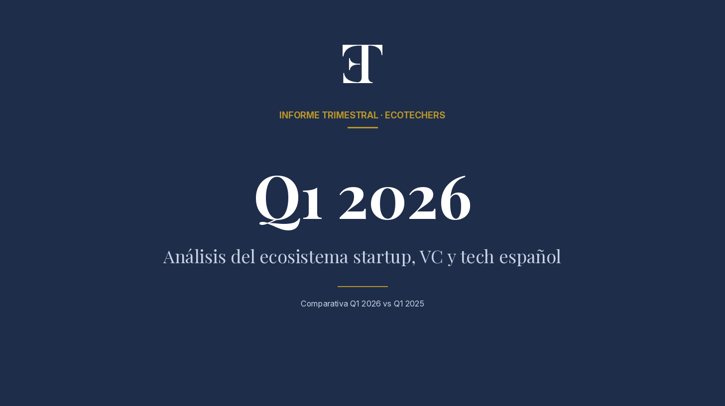 Estrenamos formato. Este es el primer informe trimestral de Ecotechers. Es el resultado de revisar 186 operaciones del ecosistema de startups y capital riesgo español del primer trimestre. No son titulares sueltos ni rankings sacados de bases de datos opacas: son cifras trazadas operación por operación, contrastadas con cinco de los mayores fondos de capital riesgo que operan en España, y con criterios metodológicos abiertos para que cualquiera pueda discutirlos. La idea es publicar uno cada trimestre y construir, número a número, una serie temporal del mercado.