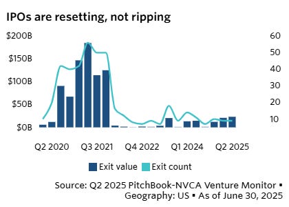 Balance de los primeros seis meses en inversión, según datos de Pitchbook: las startups de IA recaudaron $104.300M en EEUU. (66% del total) con 281 exits.