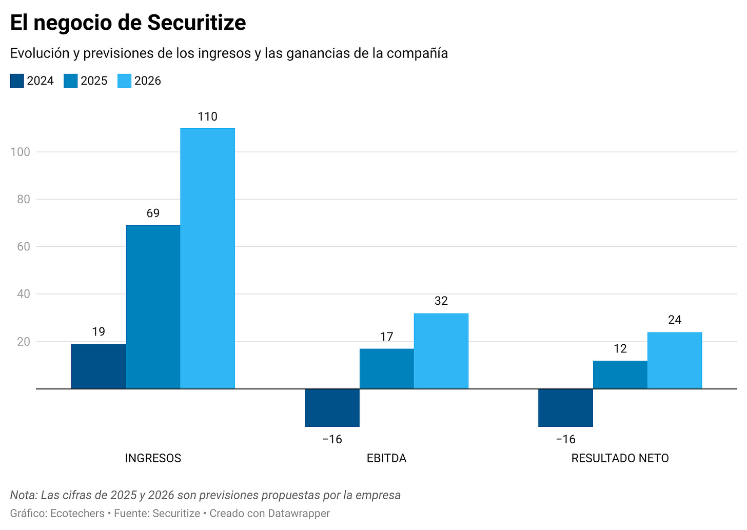 - Securitize, con sede en Miami pero con oficinas en Madrid y fundada por el español Carlos Domingo, anuncia su salida a bolsa por una valoración de $1.250M. Buceamos en todos los datos: ingresos, Ebitda, beneficio, previsiones, múltiplos… (ver gráfico abajo)