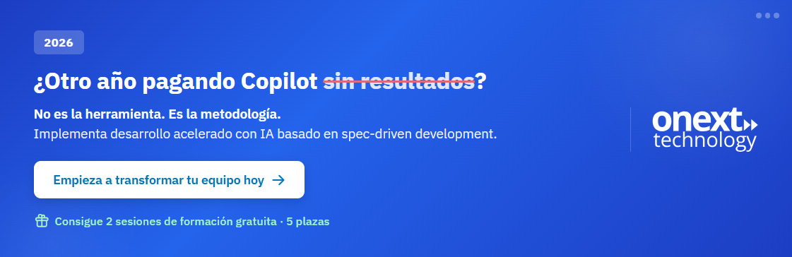 ¿Tienes Copilot u otras licencias de IA, pero el equipo no gana velocidad ni calidad? El problema no es la herramienta: es el mindset y la forma de trabajar. En onext acompañamos a equipos de desarrollo a integrar la IA en todo su ciclo de vida (formación, definición de fundamentos y acompañamiento), sin frenar el backlog.