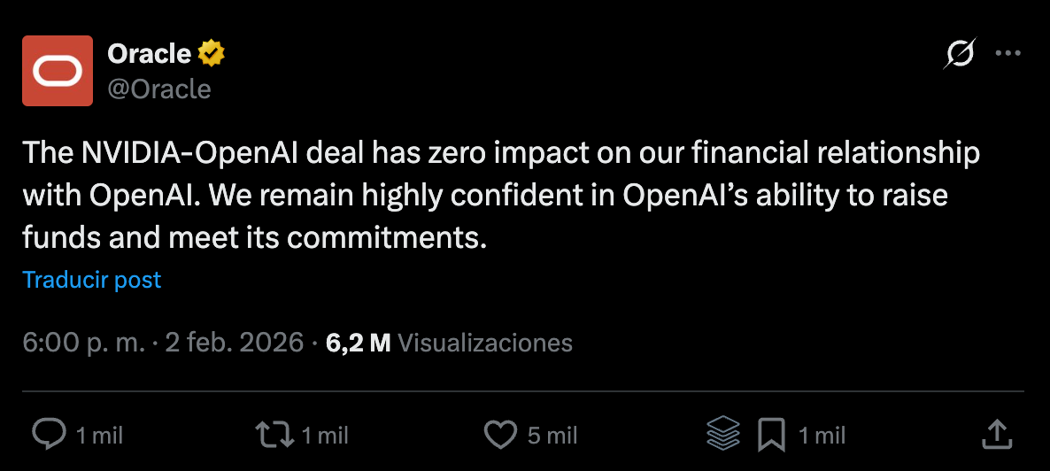 Esas dudas llevaron a Oracle a salir al paso en redes sociales con un mensaje que generó aún más dudas: